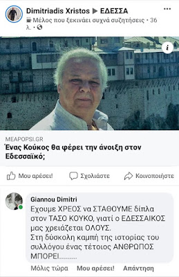 Ραγδαίες είναι οι εξελίξεις στον ιστορικό Εδεσσαϊκό μετά την πρόθεση του ιατρού Τάσου Κούκου να αναλάβει την διοίκηση της ομάδας. Σήμερα στις 2 το μεσημέρι πραγματοποιήθηκε συνάντηση όπου και ο κος Κούκος εξέφρασε την άποψη ότι θα πρέπει να υπάρχουν πολλοί παράγοντες, νέοι και παλαιοί, που θα στηρίξουν την ομάδα. Έτσι ζήτησε από τον Δήμαρχο Δημήτρη Γιάννου να ξεκαθαρίσει με ποιο τρόπο θα στηρίξει την προσπάθεια. Ο κος Γιάννου δεσμεύτηκε ότι θα είναι στο πλευρό της νέας αυτής διοίκησης. Μάλιστα ο κος Δήμαρχος με δημόσια ανάρτηση του στο δημοσίευμα της ιστοσελίδας μας επιβεβαίωσε την στήριξη του στο πρόσωπο του ιατρού Τάσου Κούκου. Αυτή η κίνηση θα δώσει άλλο ένα αβαντάζ στον ιατρό να βγει μπροστά και να οδηγήσει μετά από 20 χρόνια την ομάδα και πάλι στα επαγγελματικά σαλόνια.