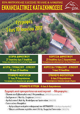 1η Ιουνίου αρχίζουν οι εγγραφές στις Κατασκηνώσεις της Ιεράς Μητροπόλεως