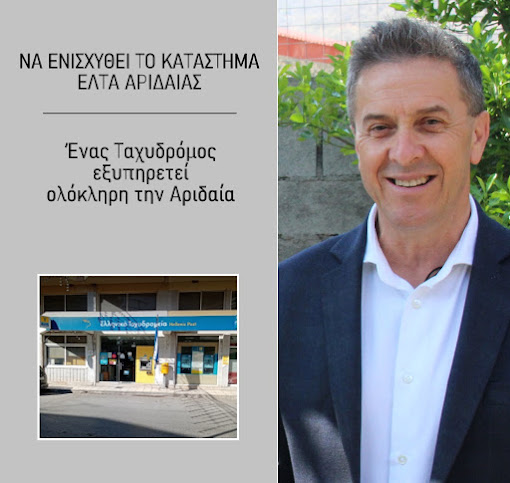 Επιτακτική είναι η ανάγκη να ενισχυθεί με προσωπικό το κατάστημα των ΕΛΤΑ Αριδαίας. Αυτό τονίζει σε δήλωσή του ο πρώην Δήμαρχος και επικεφαλής του συνδυασμού «Η Αλμωπία της Καρδιάς μας» Δημήτρης Μπίνος. Έτσι όπως έχει διαμορφωθεί η κατάσταση και λόγω της πανδημίας, οι ανάγκες είναι αυξημένες με αποτέλεσμα να μην επαρκεί το προσωπικό.