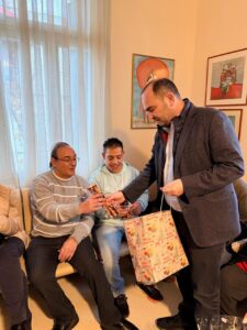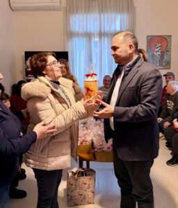 Επίσης, επισκέφτηκε το Γηροκομείο Έδεσσας, όπου είχε την χαρά να ευχηθώ στους μεγαλύτερους συμπολίτες μας αλλά και στο προσωπικό που διατηρεί την μονάδα σε άριστη κατάσταση, ενώ στη συνέχεια βρέθηκε στο ΚΔΑΠμεΑ στην Έδεσσα, όπου με ιδιαίτερη χαρά ανταλλάξανε ευχές με τα παιδιά, τους ωφελούμενους και τους εργαζόμενους. Τέλος, παρευρέθηκε στη δράση του Εμπορικού Συλλόγου Έδεσσας “Ψωνίζω – Στηρίζω – Κερδίζω”.
