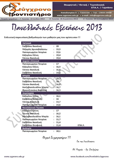 Home » ΕΠΙΤΥΧΟΝΤΕΣ ΑΠΟ ΤΟ “ΣΥΓΧΡΟΝΟ ΦΡΟΝΤΙΣΤΗΡΙΟ” ΓΙΑΝΝΙΤΣΩΝ