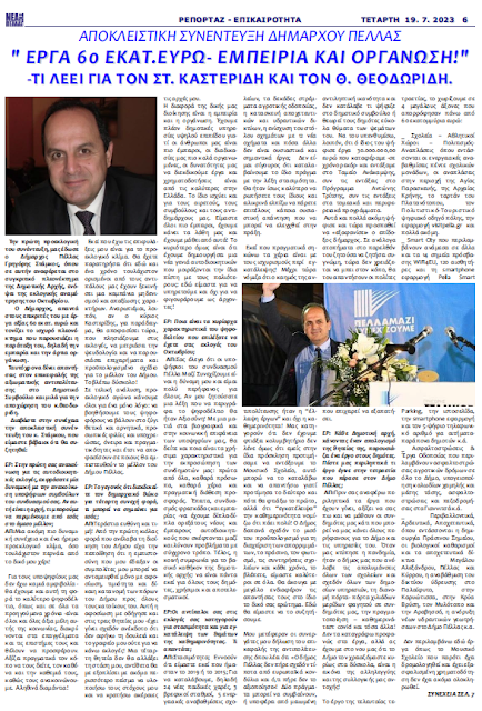 ΑΠΟΚΛΕΙΣΤΙΚΗ ΣΥΝΕΝΤΕΥΞΗ ΔΗΜΑΡΧΟΥ ΠΕΛΛΑΣ