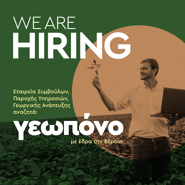 Home » Εταιρεία Συμβούλων – Παροχής Υπηρεσιών – Γεωργικής Ανάπτυξης αναζητά Γεωπόνο, με έδρα τη Βέροια.