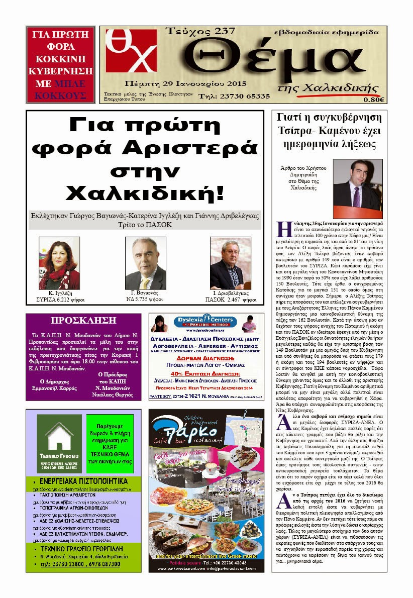 ΕΒΔΟΜΑΔΙΑΙΑ ΕΦΗΜΕΡΙΔΑ ΤΟΥ ΝΟΜΟΥ ΧΑΛΚΙΔΙΚΗΣ “ΘΕΜΑ” ΤΕΥΧΟΣ 237