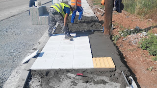 Ø η προετοιμασία σταμπωτού δαπέδου για το πεζοδρόμιο έμπροσθεν της