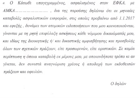 πρόσκληση και δήλωση στον ΕΦΚΑ