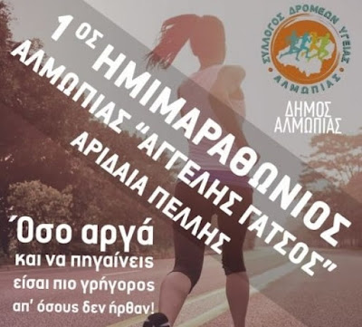 6 Μαΐου 2018 διεξήχθη με μεγάλη επιτυχία ο 1ος Ημιμαραθώνιος Αλμωπίας ¨Αγγελής Γάτσος¨, ο οποίος διοργανώθηκε από τον Σύλλογο Δρομέων Υγείας Αλμωπίας,