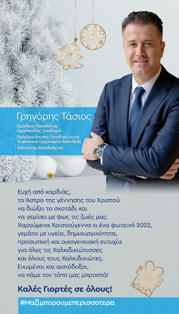 Ευχές για τις Άγιες μέρες των Χριστουγέννων από τον Υποψήφιο Βουλευτή της Νέας Δημοκρατίας Γρηγόρη Τάσιο