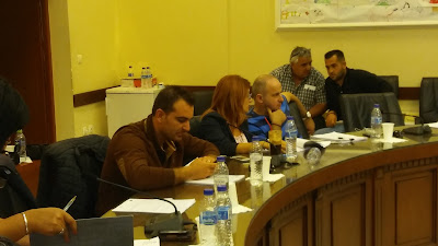 | Στο βάθος ο πρόεδρος της Τ.Κ. Πετριάς Γρηγόρης Βόλτσης δέχθηκε αρκετά πυρά από την αντιπολίτευση για το ότι η Δημοτική αρχή προσέχει στην καθαριότητα τα χωριά του |