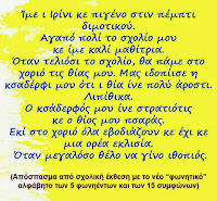 Σύμφωνα με τους νέους “κανόνες”του 2012 που ΕΧΟΥΝ ΗΔΗ ΕΓΚΡΙΘΕΙ από το “Υπουργείο Παιδείας”, ιδού πώς θα…μαθαίνουν να γράφουν τα ελληνόπουλα της πέμπτης και έκτης δημοτικού έχουν αφαιρέσει το μάθημα γραμματικής από την παιδείας μας Το μικρό αυτό παράδειγμα – ΑΝΑΤΡΙΧΙΛΑ θα έπρεπε να έχει ήδη ξεσηκώσει όσους (λένε ότι) ενδιαφέρονται για το μέλλον της ελληνικής γλώσσας αλλά και των παιδιών μας! Ελληνίδες Μητέρες σώστε τα τα παιδιά σας ζητήσατε το μάθημα γραμματικής !!!!