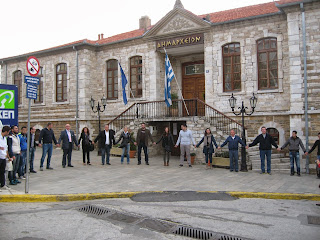 Δημαρχείο του Πολυγύρου και σχημάτισαν ανθρώπινη αλυσίδα για την προστασία της