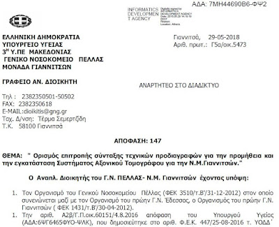 Νοσοκομείου η επιτροπή για τις τεχνικές προδιαγραφές του αξονικού ( που είναι