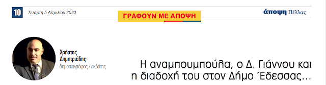 Η αναμπουμπούλα, ο Δ. Γιάννου και η διαδοχή του στον Δήμο Έδεσσας…