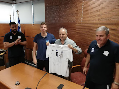 παιδιά της Εθνικής μας Ομάδας χάρισαν στον κ. Γιάννου μία φανέλα της Εθνικής με
