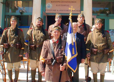 Ο λόγος για τις εκδηλώσεις που έγιναν στην Κάλυμνο στις 25-3-2022 αφιερωμένες στην ΕΘΝΙΚΗ ΠΑΛΙΓΓΕΝΕΣΙΑ 1821 στα 100 ΧΡΟΝΙΑ ΜΙΚΡΑΣΙΑΤΙΚΗ ΕΚΣΤΡΑΤΕΙΑ – ΚΑΤΑΣΤΡΟΦΗ 1919 – 1922 οι αναβιωτές της Παμμακεδονικης Ενωσης Μ.Α Ελλάδος – Αυστραλιας συγκροτήθηκαν και παρέλασαν ως άγημα του 5/42 της Μικράς Ασίας οι στολές των Ευζώνων (1919-1922) είναι ακριβή αντίγραφα της εποχής καθώς και η περιουσία της ενώσεως και η σημαια ακριβές αντίγραφο χειροποίητη
