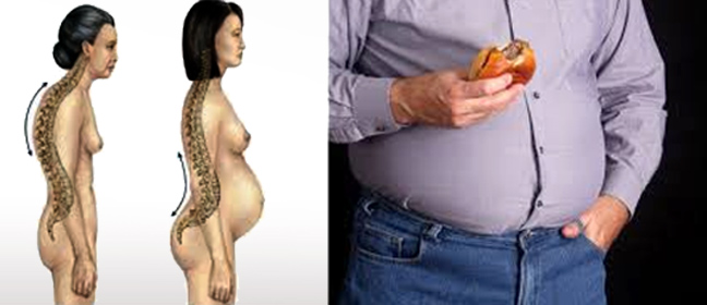 Λόρδωση από χαλάρωση κοιλιακών συμβαίνει επίσης στην παχυσαρκία και την εγκυμοσύνη λόγω της αύξησης του όγκου του κοιλιακού χώρου, που καλείται η σπονδυλική στήλη να υποστηρίξει.