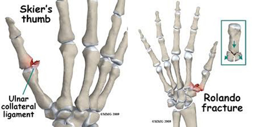 Στις κακώσεις του αντίχειρος, εκτός από τη ρήξη του ωλενίου συνδέσμου, μπορεί η βάση του αντίχειρα να υποστεί κάταγμα. Η βλάβη αυτή είναι πολύ σοβαρή.