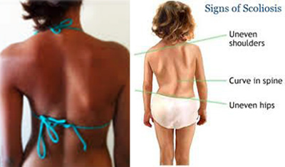 Η πρώτη εντύπωση ότι κάτι συμβαίνει, φαίνεται από τη μέση, που δεν βρίσκεται δεξιά-αριστερά στο ίδιο επίπεδο, οπότε ελέγχουμε τη θέση της σπονδυλικής στήλης σε επίκυψη (σκύψιμο). Φυσιολογικά οι πλευρές δεξιά-αριστερά δεν διαφέρουν. Στη σκολίωση προβάλλει η μία πλευρά (ήβος).