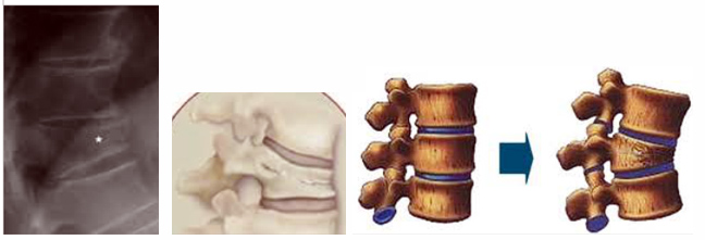 Τα οστεοπορωτικά κατάγματα στην θωρακική μοίρα της σπονδυλικής στήλης, εμφανίζονται σε γυναίκες μετά την εμμηνόπαυση, που πάσχουν από οστεοπόρωση. Η πρόκληση κατάγματος είναι απόδειξη ότι η γυναίκα πάσχει από οστεοπόρωση.