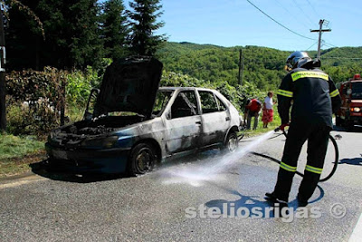 Το αυτοκίνητος τυλίχθηκε τις φλόγες σήμερα το μεσημέρι και κινούνταν στην εθνική οδό από Αρναία προς Θεσσαλονίκη, στο ύψος του Πράσινου Χωριού.