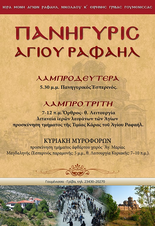 Γουμενίσσης (Γρίβας), ετοιμάζεται να τιμήσει τους Νεοφανείς Αγίους Ραφαήλ,