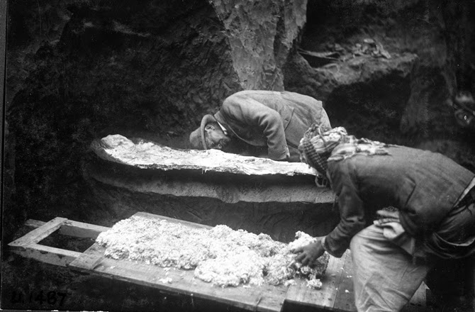 Σκάβοντας παρακάτω, ο Γούλει εντόπισε τάφους λαξευμένους στη λάσπη και