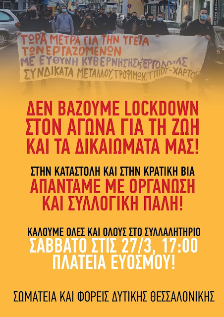 στις 27/3, 17:00 στην πλατεία Ευόσμου! Απαντάμε μαχητικά με κριτήριο τις δικές