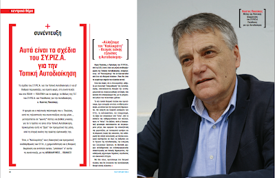Ο ΣΥΡΙΖΑ προτείνει, είπε, απέναντι στη συγκεντροποίηση της πολιτικής εξουσίας, μια διοίκηση αποκεντρωμένη στο κατώτατο δυνατό επίπεδο, ώστε να βρίσκεται κοντά στις ανάγκες των πολιτών, με ουσιαστική μεταβίβαση αρμοδιοτήτων και των ανάλογων πόρων.