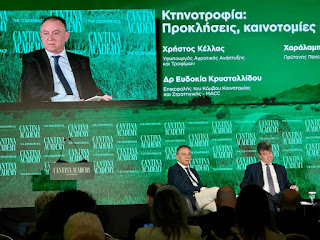 Την ανάγκη να διοχετευτούν περισσότεροι πόροι για τη στήριξη των νέων αγροτών και κτηνοτρόφων επισήμανε ο Υφυπουργός Αγροτικής Ανάπτυξης και Τροφίμων, Χρήστος Κέλλας, κατά την παρέμβασή του στο πάνελ με θέμα «Κτηνοτροφία: Προκλήσεις, Καινοτομίες και φυλές» στο Cantina Academy,