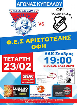 Home » Κύπελλο Ελλάδας βόλεϊ: Αριστοτέλης Σκύδρας- ΟΦΗ για την 1η αγωνιστική της Γ’ Φάσης και το πρόγραμμα των αγώνων