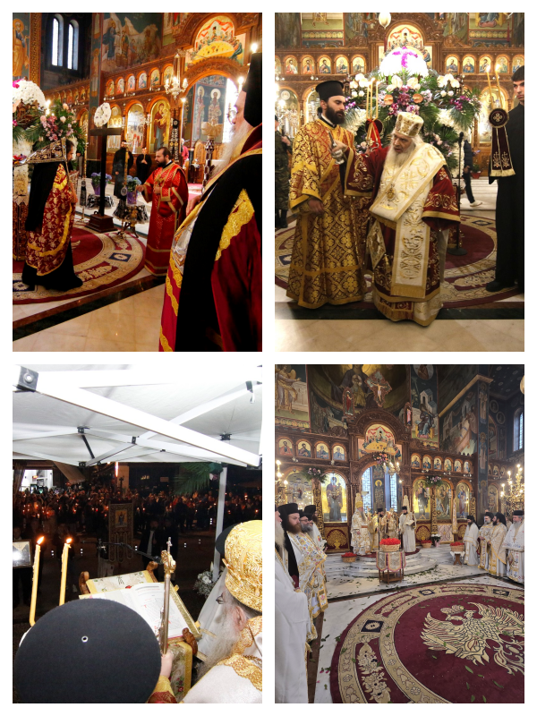ΚΥΡΙΑΚΗ ΤΟΥ ΠΑΣΧΑ Το βράδυ του Μ. Σαββάτου (11/4) στον Ιερό Καθεδρικό Ναό Αγίας Σκέπης Εδέσσης τελέσθηκε προεξάρχοντος του Σεβ. Μητροπολίτου Εδέσσης κ. Ιωήλ η Ακολουθία της Παννυχίδος και έγινε η μετάδοση του Αγίου Φωτός εκ του Παναγίου Τάφου. Εν συνεχεία σχηματίσθηκε ιερά πομπή έχοντας επικεφαλής τον Θεοφιλέστατο Επίσκοπο Αλμωπίας κ. Στέφανο με προορισμό το κέντρο της πόλεως, όπου έγινε η τελετή της Αναστάσεως. Στη συνέχεια η ιερά πομπή επέστρεψε στον Ι. Καθεδρικό Ναό, όπου ο Σεβασμιώτατος, συλλειτουργούντος του Θεοφιλεστάτου τέλεσε την Αναστάσιμη Θεία Λειτουργία.