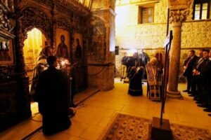 Μ. ΠΕΜΠΤΗ Το βράδυ της Μεγάλης Πέμπτης (9/4), στις 19.00, ο Σεβασμιώτατος Μητροπολίτης Εδέσσης, Πέλλης και Αλμωπίας κ. Ιωήλ χοροστάτησε στην ακολουθία των Αχράντων Παθών (Όρθρος Μ. Παρασκευής), η οποία τελέσθηκε στον ιστορικό ιερό ναό Κοιμήσεως της Θεοτόκου Εδέσσης (Παλαιά Μητρόπολη). Στην ιερά ακολουθία μετείχαν ο Ιεροκήρυξ της Ι. Μητροπόλεως Πανοσιολ. Αρχιμανδρίτης Παντελεήμων Καραλάζος, ο Προϊστάμενος του Ι. Καθεδρικού Ναού Αγ. Σκέπης Εδέσσης Αρχιμ. Χριστόδουλος Καραγιάννης και ο Διάκονος Ιωάννης Γκερτσάκης.