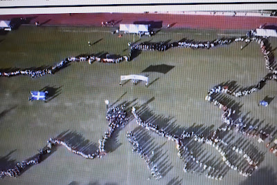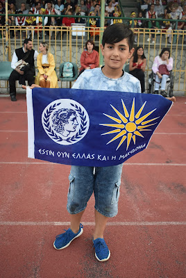 Ραφαήλ Ζουμής, που με αριθμημένα σημαιάκια σχημάτισε το χάρτη της Μακεδονίας στο δημοτικό στάδιο της πόλης, όπου οργανώθηκε η συνάντηση .