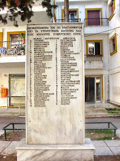 από μια μαρμάρινη πλάκα, πάνω στην οποία είναι γραμμένα τα ονόματα ηρώων, συμπολιτών