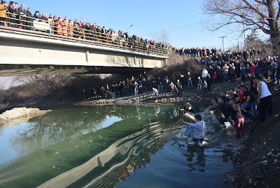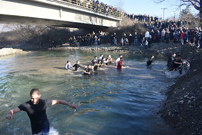 οι πιστοί βουτηχτές για να «πιάσουν» το Σταυρό. Όταν πραγματοποιήθηκε η