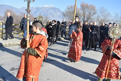 Πάνω στην αυτοσχέδια εξέδρα της γέφυρας, με κατάνυξη εψάλησαν τα καθιερωμένα των Επιφανείων, ενώ κάτω από αυτή βρίσκονταν σε ετοιμότητα