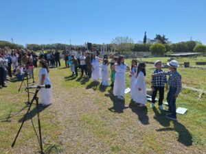 Ακολούθησε πολιτιστικό πρόγραμμα με δρώμενο από μαθητές της Β’ και Γ’ τάξης του δημοτικού σχολείου Πέλλας και με κύριο μήνυμα την Ειρήνη.