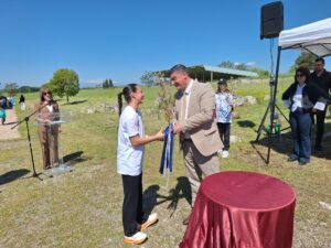 Ο κ. Φουντουκίδης ευχαρίστησε θερμά όλους τους φορείς, εργαζόμενους και υπηρεσίες του Δήμου Πέλλας, την Εφορεία Αρχαιοτήτων, το Τμήμα Τροχαίας, τους εκπαιδευτικούς, τους μαθητές και τους εθελοντές, ευχόμενος καλό ταξίδι στο σύμβολο της Ειρήνης που ξεκινά από την Πέλλα και στέλνει παντού τις αξίες του Πολιτισμού, με μηνύματα Ειρήνης και συναδέλφωσης των λαών, όπως υπογράμμισε χαρακτηριστικά.