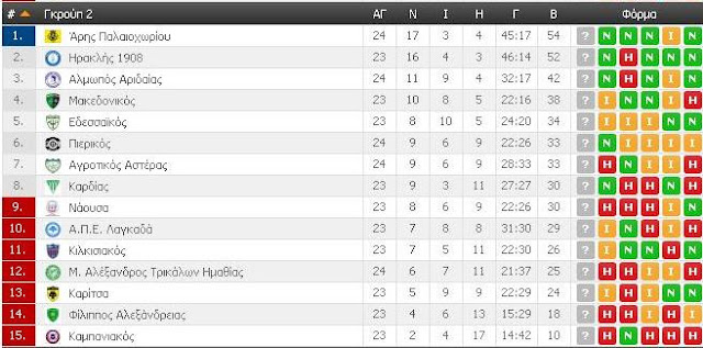 βαθμολογία. Κατά τα φαινόμενα έχουν υποβιβαστεί ο ουραγός Καμπανιακός και ο
