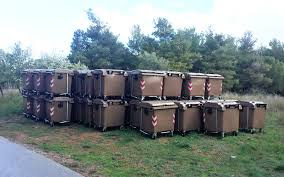 –790 τεμάχια πλαστικών καφέ κάδων οργανικών απορριμμάτων 240 λίτρων.