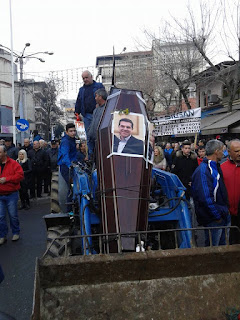 Είναι σίγουρα ότι αν τον είχαν μπροστά τους θα τον έβαζαν και στην κάσα! Ο λόγος για τον Πρωθυπουργό Αλέξη Τσίπρα που εκατοντάδες αγρότες, κτηνοτρόφοι, ελεύθεροι επαγγελματίες και επιστήμονες έβαλαν την φωτογραφία του σε ένα φέρετρο! Πραγματικά μακάβρια στιγμή η οποία δείχνει όμως την οργή των αγροτών και των ανθρώπων του μόχθου. Αυτό που τόνισαν είναι αντί να μας θάψουν αυτοί θα τους θάψουμε εμείς!