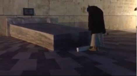 Μια γιαγιά… Στα γόνατα με σκυμμένο το κεφάλι.. Υποκλίνεται στους νεκρούς, τιμά το αίμα όσων θυσιάστηκαν, όσων χάθηκαν, όσων υπήρξαν για να το παίζουμε σήμερα εμείς ελευθεροι-μοντερνοπολιτισμενοι του κωλου…