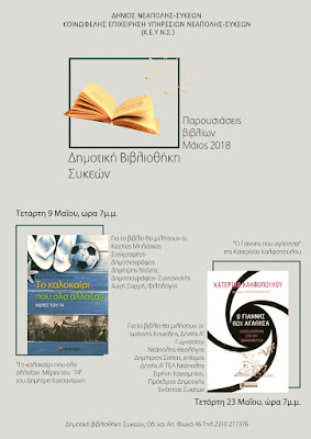 Τετάρτη 9 Μαΐου και την Τετάρτη 23 Μαΐου, όπου θα παρουσιασθούν τα βιβλία του