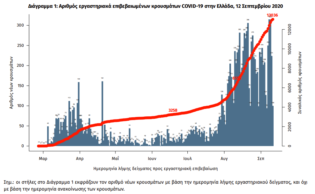 Ειδικότερα, σύμφωνα με ανακοίνωση του Εθνικού Οργανισμού Δημόσιας Υγείας (ΕΟΔΥ), ο συνολικός αριθμός των κρουσμάτων είναι 13.036, εκ των οποίων το 55.4% άνδρες.