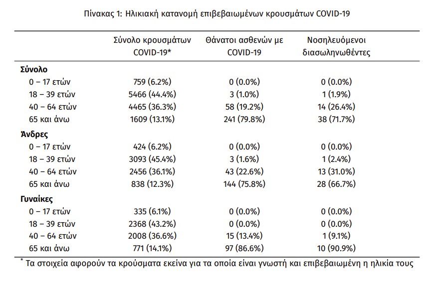 Η διάμεση ηλικία των θανόντων συμπολιτών μας ήταν τα 78 έτη και το 96.4% είχε κάποιο υποκείμενο νόσημα ή/και ηλικία 70 ετών και άνω.