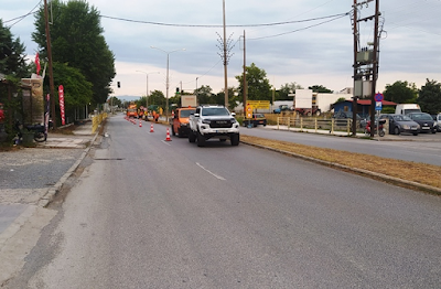 φορτοεκφόρτωση υλικών και χρωματισμούς κρασπέδων και νησίδων.