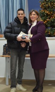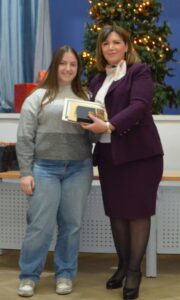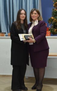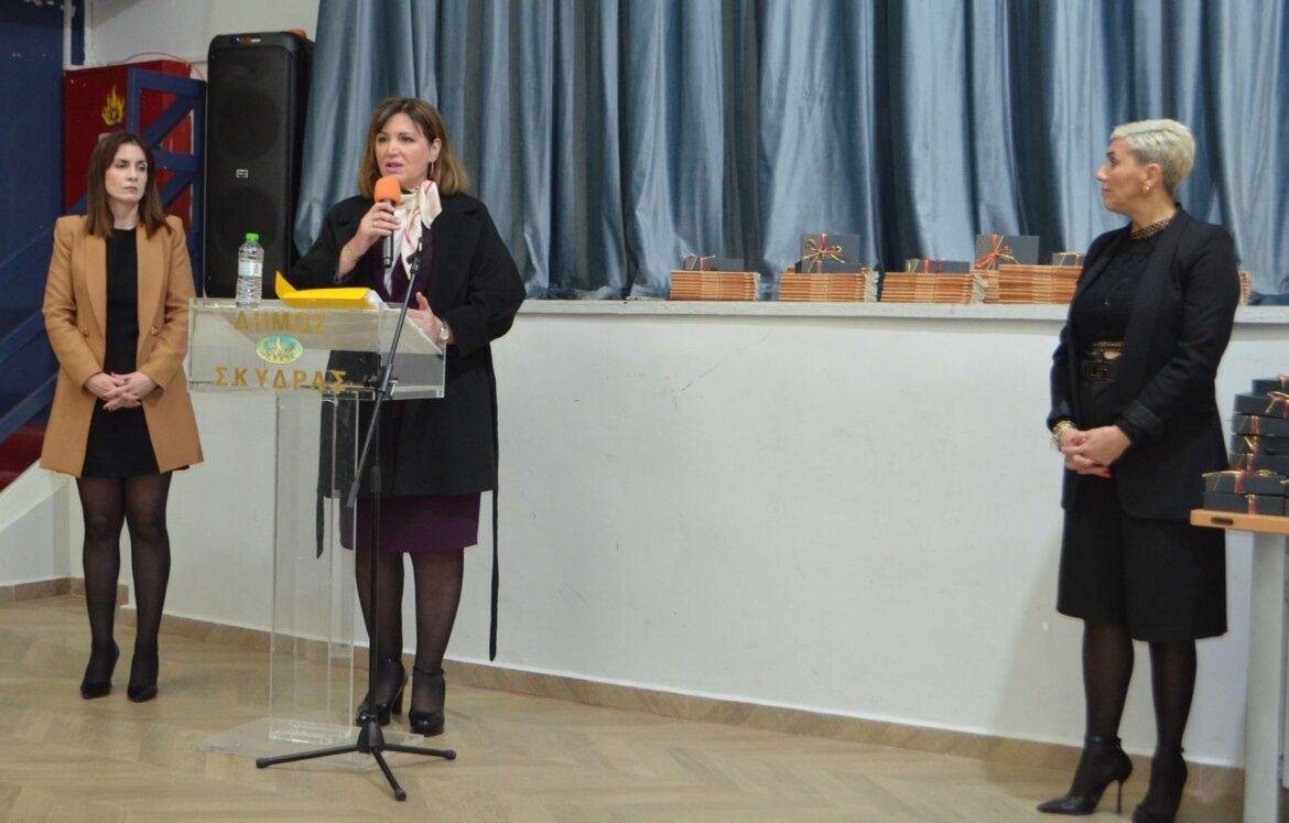 Φέτος μαζί με τον έπαινο και τον στυλό προσφέρουμε στα παιδιά μας κι ένα βιβλίο. Το βιβλίο αυτό έχει τον τίτλο «Το Μοίρασμα». Γράφτηκε από 14 συνδημότες μας κι αναφέρεται στον τόπο μας, στη Σκύδρα και στους ανθρώπους μας. Το βιβλίο αυτό λοιπόν προσφέρεται με την ελπίδα και την ευχή να συντροφεύει τους φοιτητές μας, όπου κι αν βρίσκονται και με την ανάγνωσή του ν΄ανατρέχουν στον τόπο μας και μεταξύ των άλλων ν΄αποτελεί ένα μικρό εμπόδιο λησμονιάς για τον τόπο μας. ΄Εχω πει πολλές φορές, συνέχισε η Δήμαρχος, και θα το επαναλάβω ότι ο αυτός ο τόπος είναι οι άνθρωποί μας, είναι τα παιδιά μας. Τα παιδιά μας που ξεχωρίζουν, που προοδεύουν τα οποία θέλουμε όπου κι αν βρίσκονται, όσο ψηλά κι αν φτάσουν να έχουν στη καρδιά τους τη Σκύδρα, τα χωριά μας και πάντα να επιστρέφουν με αγάπη. Η Δήμαρχος ευχήθηκε στα παιδιά να έχουν ψυχική και σωματική υγεία, τα φοιτητικά χρόνια να είναι τα ομορφότερα της ζωής τους, να έχουν τις καλύτερες αναμνήσεις και να βάλουν τις ουσιαστικές βάσεις και τα θεμέλια στην πορεία της ζωής τους. Επίσης ευχήθηκε, απευθυνόμενη σ΄όλους το νέο έτος 2026 να είναι καλύτερο από το 2025 με ειρήνη, αγάπη, αλληλεγγύη και πρόοδο για όλο τον κόσμο.
