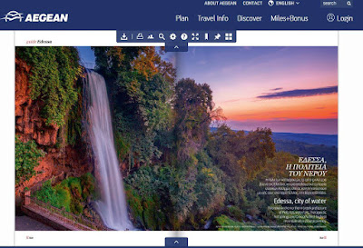 Κάποτε λέγανε πως σηκώνοντας μια πέτρα συναντάς έναν Έδεσσαίο. Έτσι λοιπόν μεγάλη διαφήμιση για την περιοχή του Δήμου Έδεσσας είναι το αφιέρωμα που κάνει στον τόπο μας το περιοδικό Blue της αεροπορικής εταιρίας Aegean. Ο Δήμαρχος Έδεσσας ευχαρίστησε θερμά τον Διευθύνοντα Σύμβουλο της εταιρίας, τον Δημήτρη Γερογιάννη, ο οποίος είναι ένας από τους αξιόλογους Εδεσσαίους που τιμούν τον τόπο καταγωγής τους.