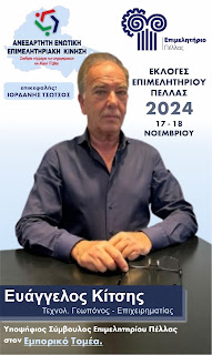 Ο επιχειρηματίας Ευάγγελος Κίτσης έχει ανακοινώσει την υποψηφιότητα του για σύμβουλος στον Εμπορικό Τομέα, στην παράταξη του Ιορδάνη Τσώτσου, “Ανεξάρτητη Ενωτική Επιμελητηριακή Κίνηση”. Οι εκλογές του Επιμελητηρίου Πέλλας είναι προγραμματισμένες να διεξαχθούν την Κυριακή 17 και τη Δευτέρα 18 Νοεμβρίου. Ο κ. Κίτσης καλεί τα μέλη και τον επιχειρηματικό κόσμο της Πέλλας, να προσέλθουν στις κάλπες και να στηρίξουν την παράταξη που γνωρίζει τον κλάδο και την αγορά.
