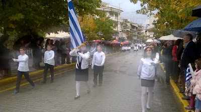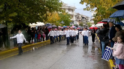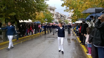 επέτειος της 28ης Οκτωβρίου 1940, στην Αριδαία, με βροχή.